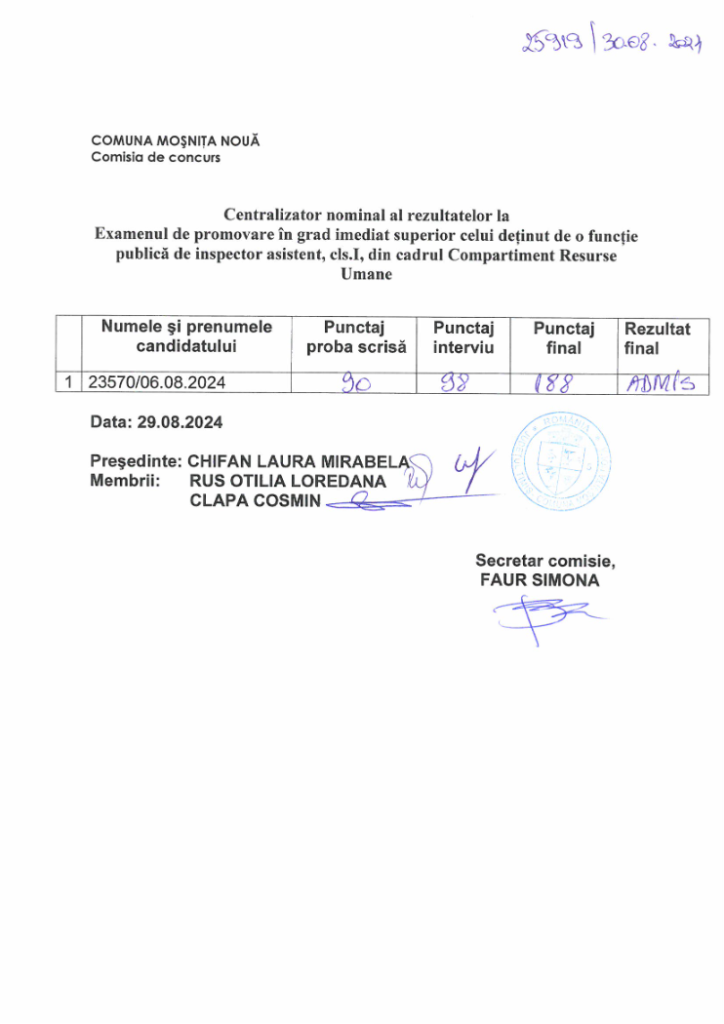 Rezultate finale la examenul de promovare resurse umane