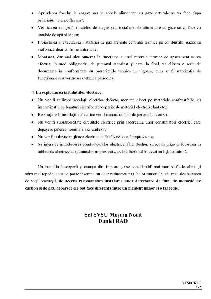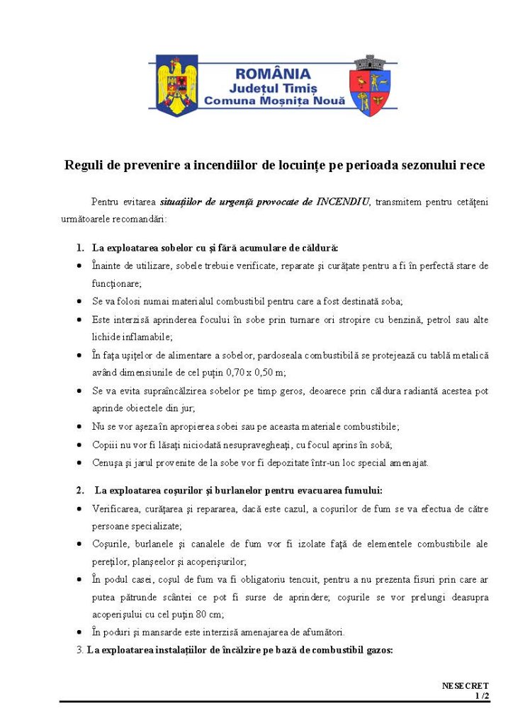 Pentru evitarea situațiilor de urgență provocate de incendii, vă recomandăm respectarea următoarelor măsuri: