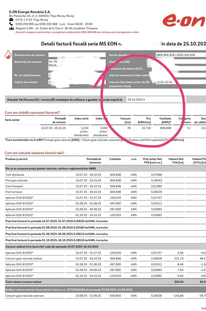 ➡ Aceste informații le puteți găsi în aplicația furnizorului – pe prima pagină – sau pe factura de gaz, la pagina 2.