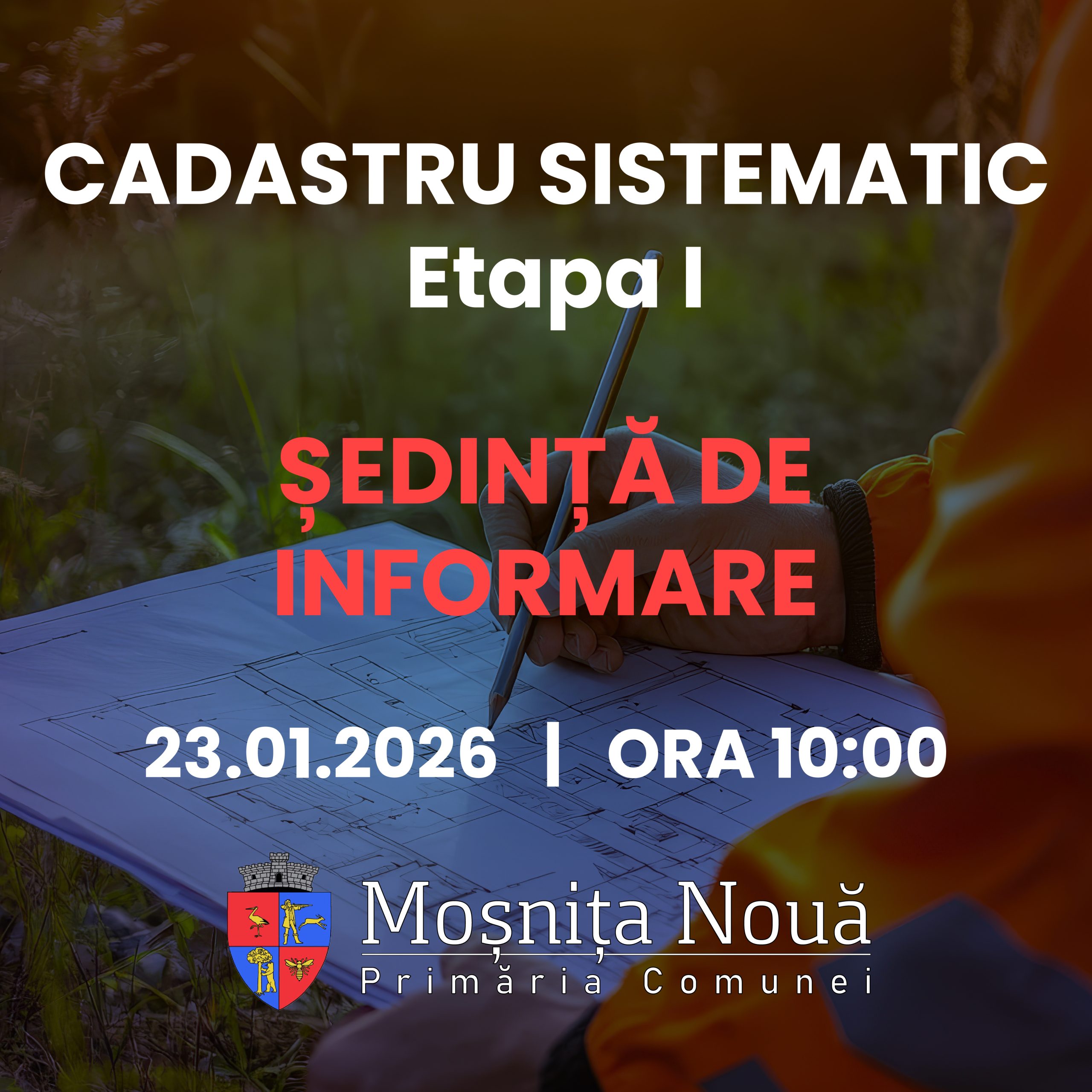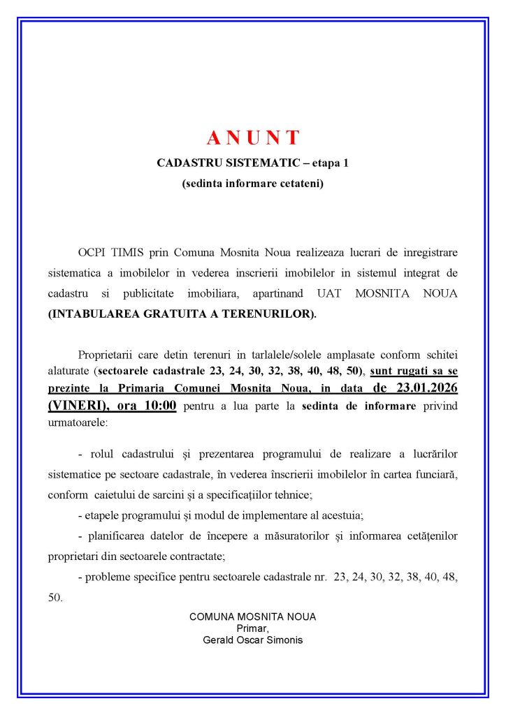 OCPI Timiș, prin Comuna Moșnița Nouă, derulează lucrări de înregistrare sistematică a imobilelor, în vederea înscrierii acestora în sistemul integrat de cadastru și publicitate imobiliară.